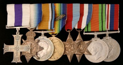 Group of eight: Military Cross Geo V unnamed 1914-15 trio. 2 Lieut H.J.M. Wilson with M.I.D Gazetted 30-01-1919. 1939/45 Star, Defence and War Medal MC Gazetted 12-12-1919 'For distinguished service in connection with Military Operations in the Balkans and with the British Army in the Black Sea', served in RFA.With research, mounted as worn, GVF.