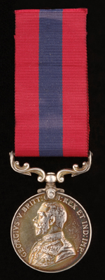 Geo V Volunteer Force Long Service issued to Lance Sgt H M Khajurina Sind Vol Rifles, lightly gilded but VF, with two small silver rings attached to suspension bar.