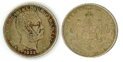 Bulgaria 1882 2 leva & lev, plus 1881 Heaton Mint 5 stotinki, good VF. (3)