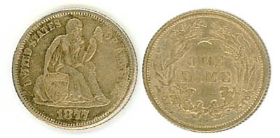 USA 1876S, 1901 & 1911 dimes, all fine plus 7 miscellaneous others, av. good. (10)