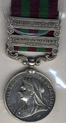 India General Service Medal 1896 Clasps Punjab Frontier 1897-98 & Tirah 1897-98, 14197 Gunner A Teasdale, 24th Field Bty RA, NEF.