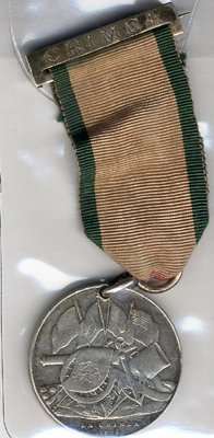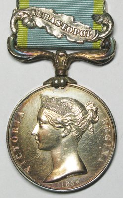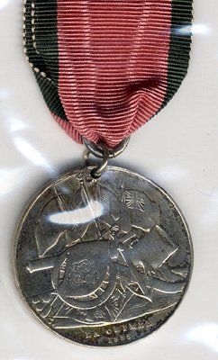 Turkish Crimea (Sardinian issue) un-named, slight edge bruising otherwise VF, with original ribbon & inscribed silver suspender, VF.