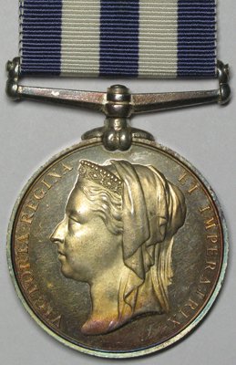 Egypt Medal 1882-89 No Clasp dated 1882. Reverse to W F Lillywhite G R Svt HMS Inconstant. Virtually Mint with frosted head & mirrored field, very tiny EK, difficult to find a better example, golden toned.