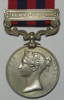 India General Service Medal 1854 Clasp Burma 1885-87 to 1352 Private R Massam, 2nd Munster Fusiliers (pawn mark on edge lightly etched) engraved running script, virtually Mint, GEF.
