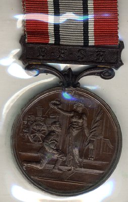 British Fire Service Association Medal in bronze to M K Sykes, NEF.