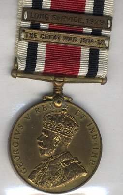 Geo V (robed base) Police Special Constabulary Medal in bronze with clasps 'The Great War 1914/18' & 'Long Service 1929' GVF.