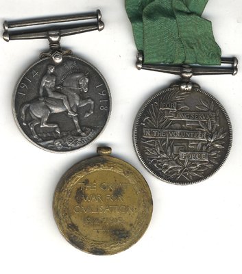 Group of three - Long Service in the Volunteer Force Medal to 992-Bom W Curry, 2nd North'd Vol ART. Lot includes Pair BWM & Victory to 156 Pte W Curry, Rifle Brigade - may be same as or son of the above, Victory Medal tarnished & missing ring, VF.