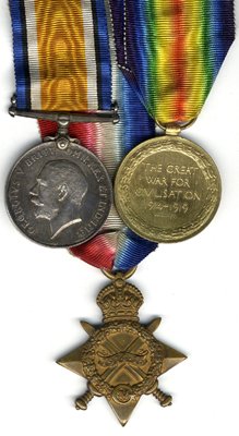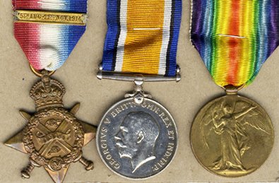 Trio - 1914 Star, BWM & Victory 4950 Cpl F G Mackenzie, S Gds. Medals were forfeited by Field General Court Martial, later issue was approved, entitled to SWB. Entered theatre 07.10.14. Reduced to Pte on pair, VF.