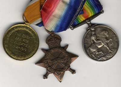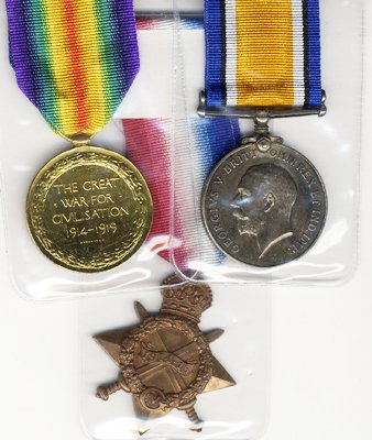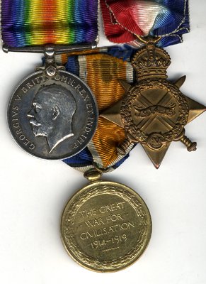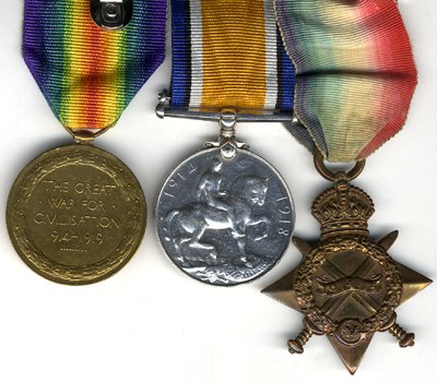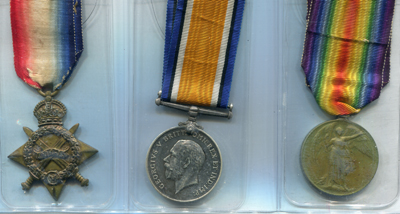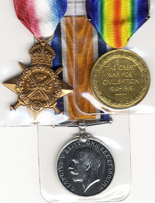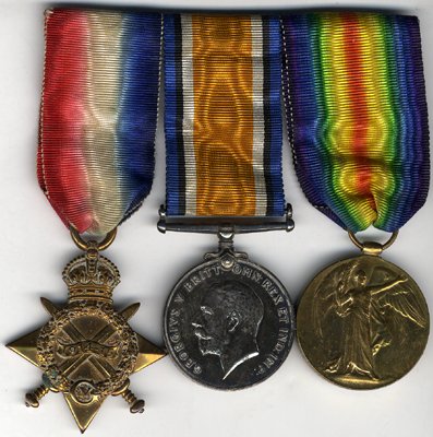Trio - 1914-15 Star, BWM & Victory, 18463 Pte W T Howlett, R Berks Rgt, NEF.