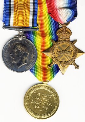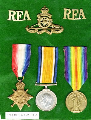 Trio - 1914-15 Star, BWM & Victory, 1794 Dvr G Fox, RFA with badge & collars, VF.