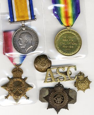 Trio - 1914-15 Star, BWM & Victory, T4 038417 Dvr E R Parker, Army Service Corps, with Corps badge & collars, VF.