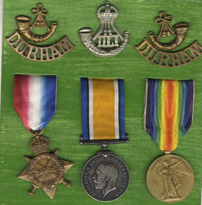 Trio - 1914-15 Star, BWM & Victory 2829 Pte F Orr DLI, 8-2829 on the pair, with DLI Reg. badge & collars, VF.