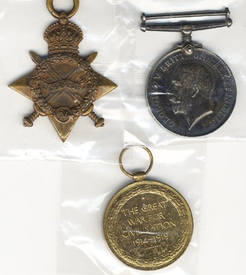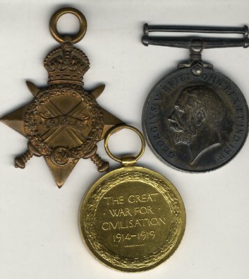 Trio - 1914 Star, BWM & Victory 11009 Pte A Mearns, KOSB, entered theatre 04.10.14, VF.