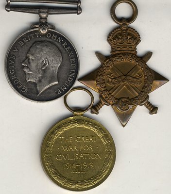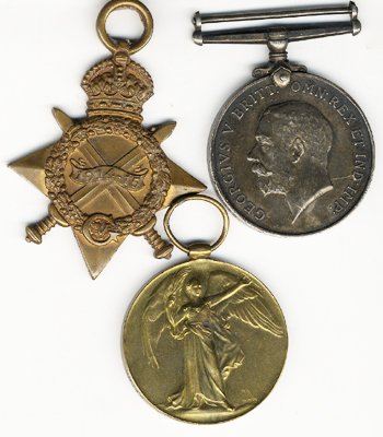 Trio - 1914-15 Star, BWM & Victory, 1550 Gnr F Woods RFA, GVF.