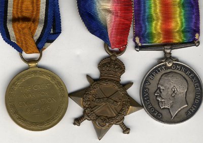 Trio - 1914-15 Star, BWM & Victory, 80945 W Mould Sto RNR, GVF.