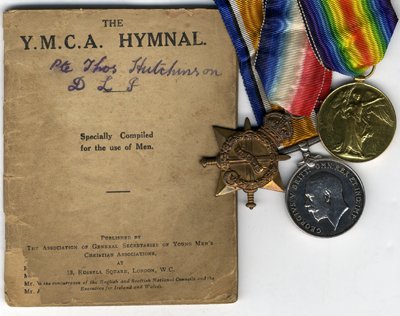 Trio - 1914-15 Star, BWM & Victory, 11819 Pte T Hutchinson Durh L Inf. This recipient was KIA, original ribbons, GVF.
