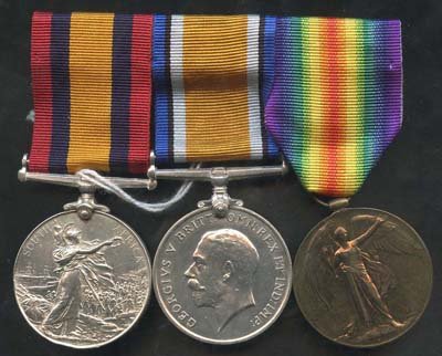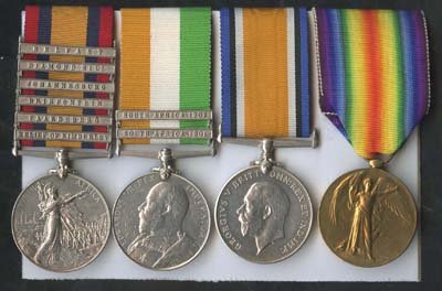 Group of eight - mounted as worn, Queens' South Africa Clasps Cape Colony, South Africa 1902, 4734 L/Cpl V. Wilson, 16th Lancers 1914-15 Trio to Pte/Sgt on pair, 1367 Pte V. Wilson North'd Yeo, 1939-45 Atlantic & Africa Stars (NA 1942-43) Clasp & War Medal. Lot includes wound badge No B200498. The Victory Medal has been lightly rubbed on naming, GVF. Lot also includes Condolence slip & Official letter stating that he died on the 12th March 1943 whilst serving as an engineer on the SS 'BARON KINNARD.' An enlistment certificate for the North'd Hussars & 12 Lancers is included. His ship was sunk by U621. Further research included. GVF.
