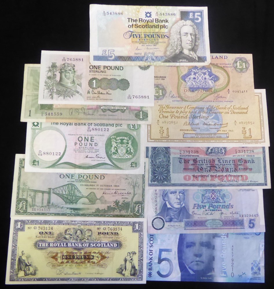 Scottish Banknotes x11, various £1 (8) & £5 (2), dated range from 1963 to 1980's, fine to VF. (11)