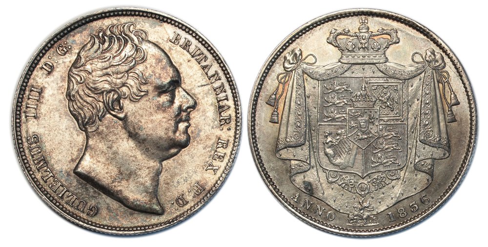 1836 halfcrown, choice UNC with beautiful antique 'cabinet' tones. A superb coin with considerable eye-appeal.