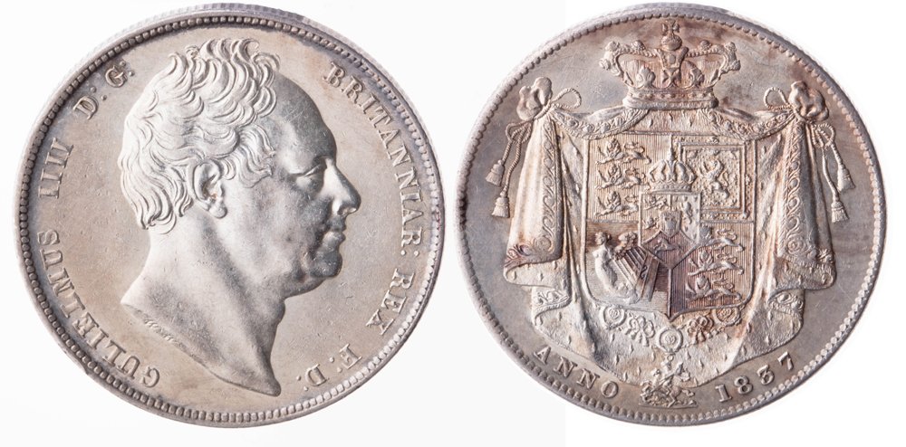 1837 halfcrown, a very nice EF with some choice toning to the reverse. A scarce date, rare in this high grade. S3834.