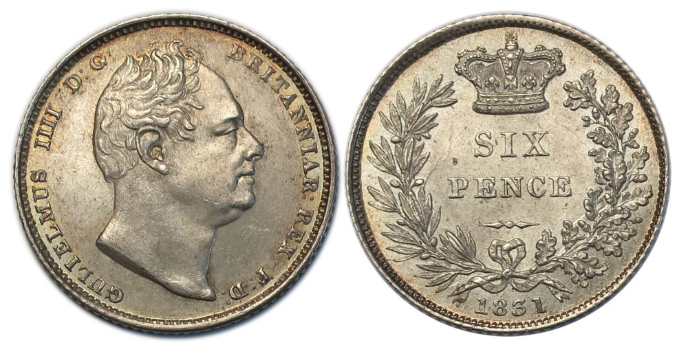 1831 sixpence, choice uncirculated with beautiful old toning. A superb example, rare as such. S3836.