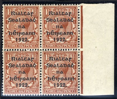 1922 1½d red brown marginal block of four fresh M, one with PENCF variety, SG. 10a.