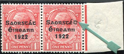 1922-23 1d scarlet right marginal pair, one with Accent & Final T inserted by hand, fresh fine M, SG. 53c.