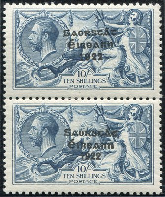 1925-28 10s dull grey blue vertical pair wide & narrow date fresh M, signed J H Stowlow, SG. 85a. Cat. £1200