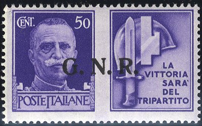 1944 Regency unissued 50c 'Badoglio' black & grey top marginal UM without watermark. Rare, Sass 515G. Cat. €2800