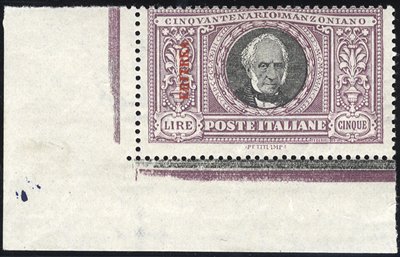 1927 L5 Pro Milizia UM bearing trial overprint. Unissued, signed Diena, full RPS Cert, Sass 108A. Cat. €2000