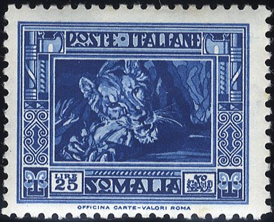 1935-1938 Pictorial series L25 Lion P.14 UM, Sass 230. Cat. €3000