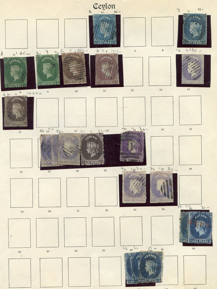 1857-1935 useful but untidy collection on printed leaves incl. Imperf Chalons 1d (2), 2d (2), 6d (2), 1s Perf Chalons 1d (5), 6d (2), 1s (7), later QV incl. several M with some duplication, many Surcharges, few KEVII & KGV mixed M & U, 1927-29 5r pair fiscal use, 1935 Jubilee set M & U etc. Condition is very mixed. (270+)