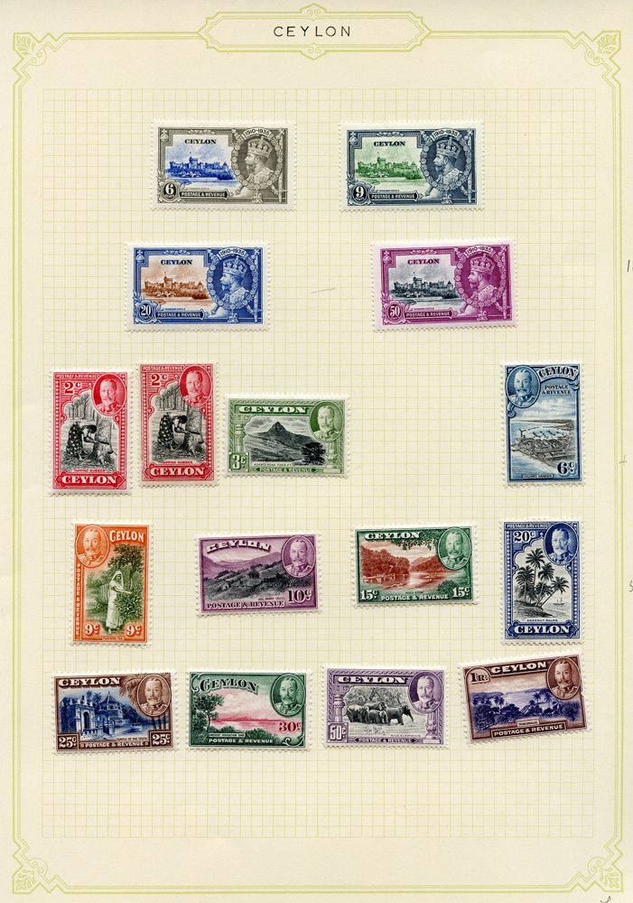 1857-1935 remaindered collection on printed leaves incl. KGV vals to 5r M, 1935 Jubilee set M & U,1935 Pictorial Defin set M etc. (approx 190)