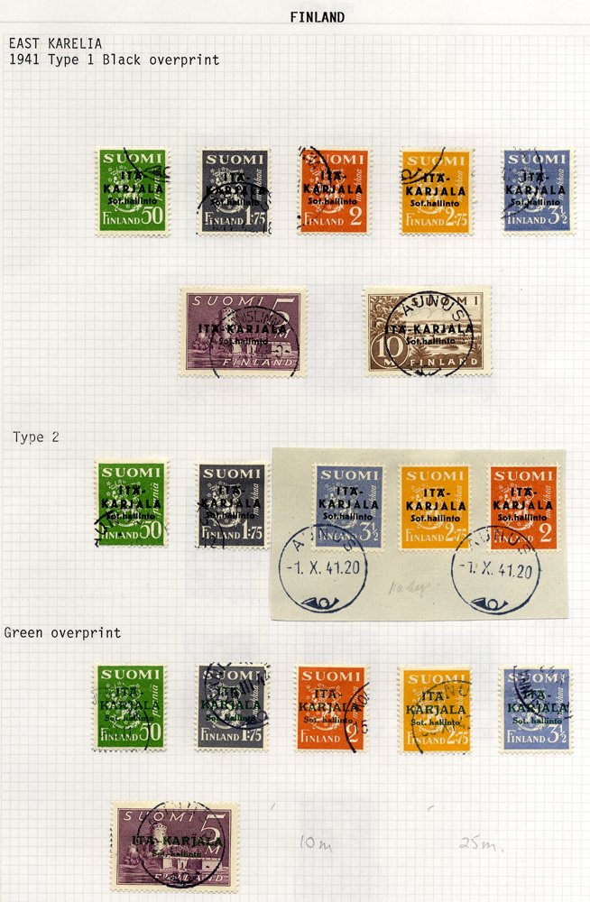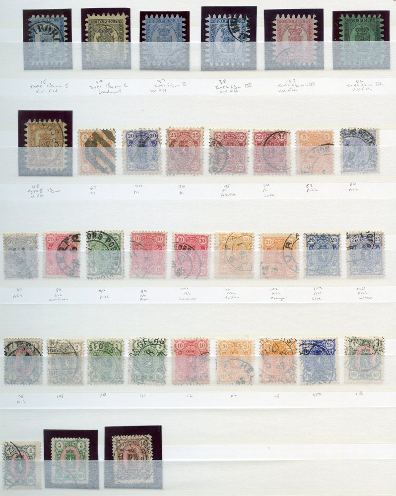 1866-1996 good to VFU collection housed in a Davo album incl. 1875-85 vals to 1m drab & rose, 1889-94 vals to 5m & 10m, 1917 vals to 10m, 1918 to 1m, several Charity sets & later ranges of VFU through to 1990's plus EAST KARELIA issues incl. 1941 set Type I & II, opt in green set to 5m, 1942 President & Field Marshal sets etc. Clean lot.