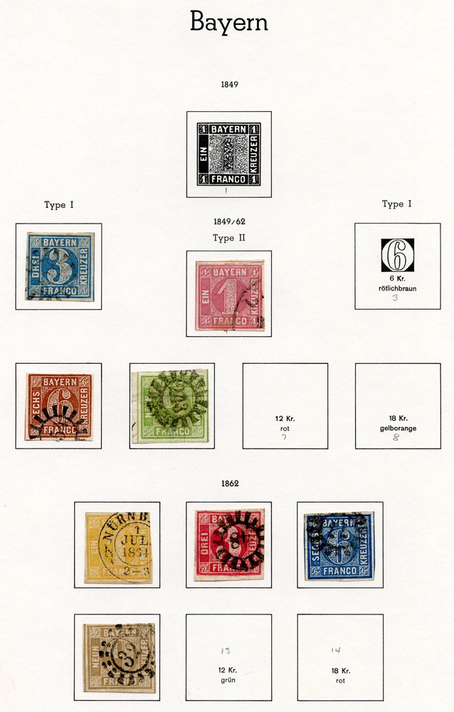 BAVARIA collection on Lighthouse leaves with 1849 3k, 1850-58 1k, 6k, 9k (2), 1862-63 1k, 3k, 6k, 9k, 1862-63 1k, 3k, 6k (both), 7k, 1870 to 10k, also 18k - all U, 1876 few vals to 2m, 1881 to 2m U, 1888-1900 to 80pf, 1900 3m, 1911 vals to 2m, 1914 vals to 80pf U, High Values M to 20m, 1920 Imperf to 20m M, Free State set M Perf & Imperf, 1920 set to 20m, some Officials etc. Clean lot - condition very good. (few 100's) Cat. £650 approx.