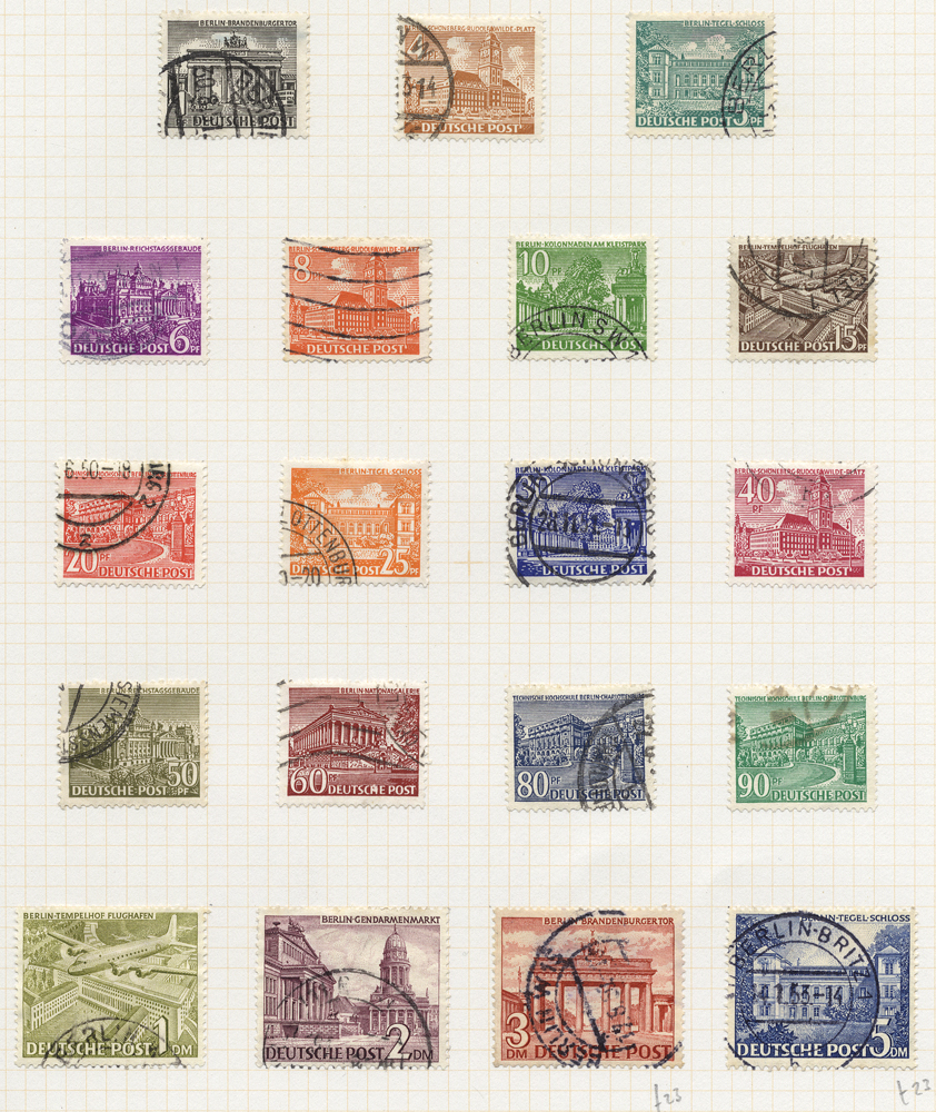 WEST GERMANY 1949-79 & BERLIN 1949-80's VFU collections each housed in a Lighthouse printed album both incl. better catalogued sets, W.Germany appears virtually complete, Berlin with some spaces but still has many better sets incl. 1949 Buildings set, 1949 Goethe, 1949 Surch set, 1951 both Bell sets, 1953 Bell set, 1953 Uprising set etc. A useful run through collection which will catalogue up well. (100's)