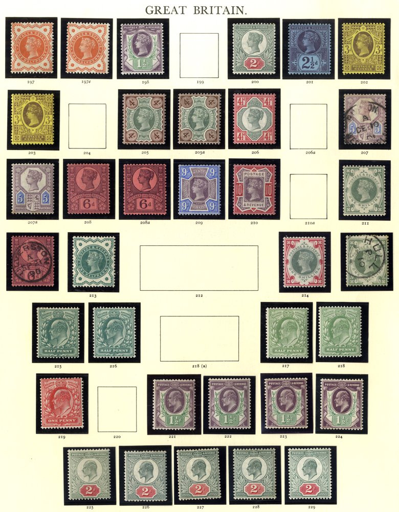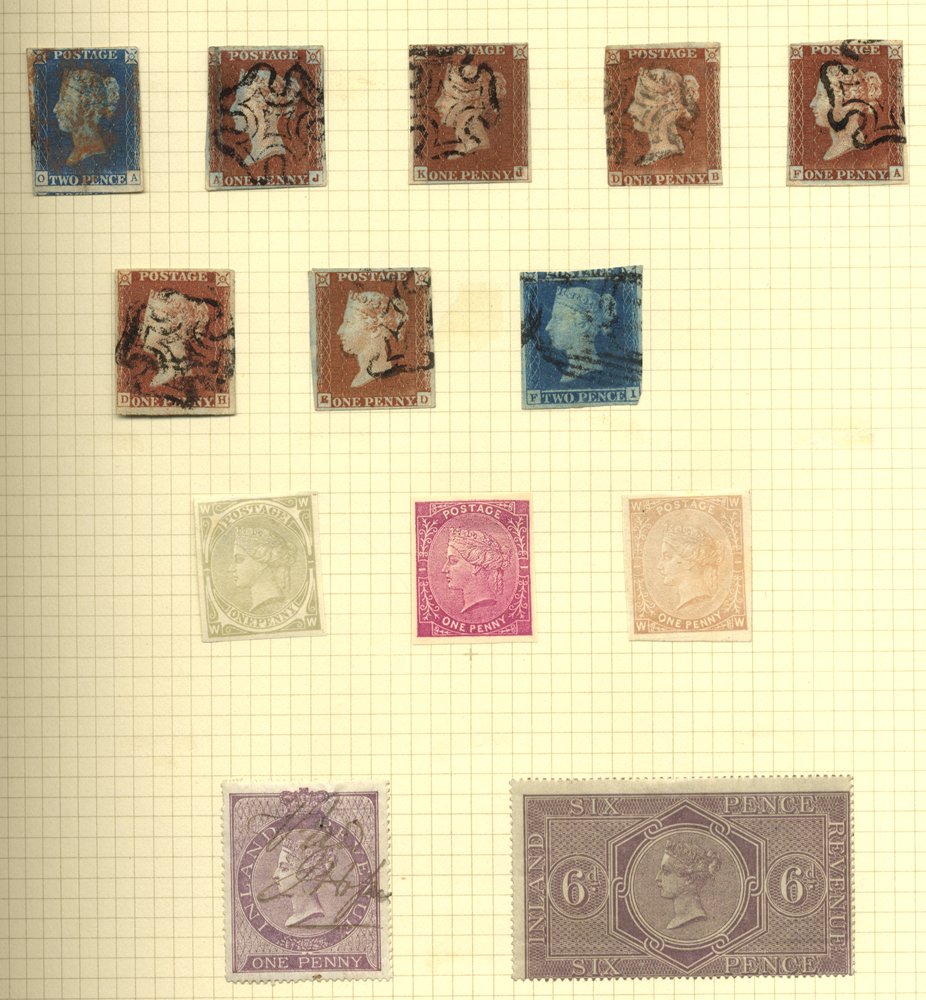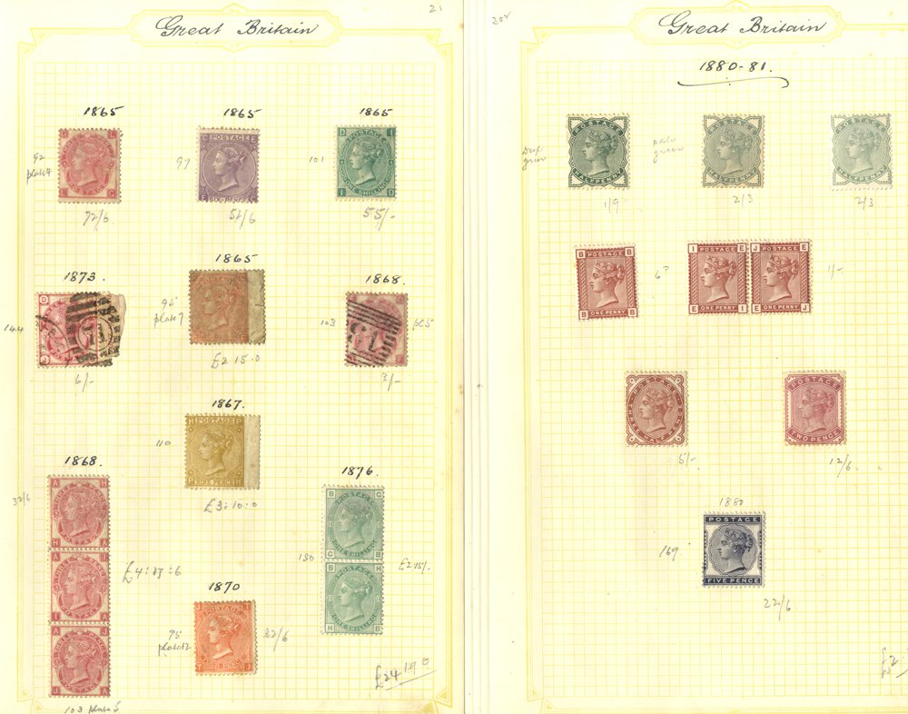1840-1918 collection of M & U on old Windsor leaves incl. 1840 1d (6) & 2d - all cut into, range of Perf Line Engraved incl. 1858-79 1d Plates M range, Surface Printed U range, KEVII to 10s U, KGV to 10s U etc. Mixed condition throughout. (321)
