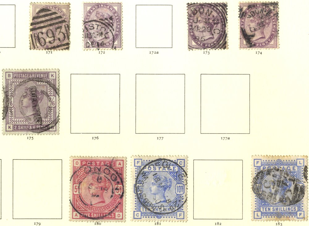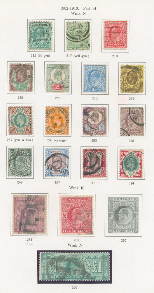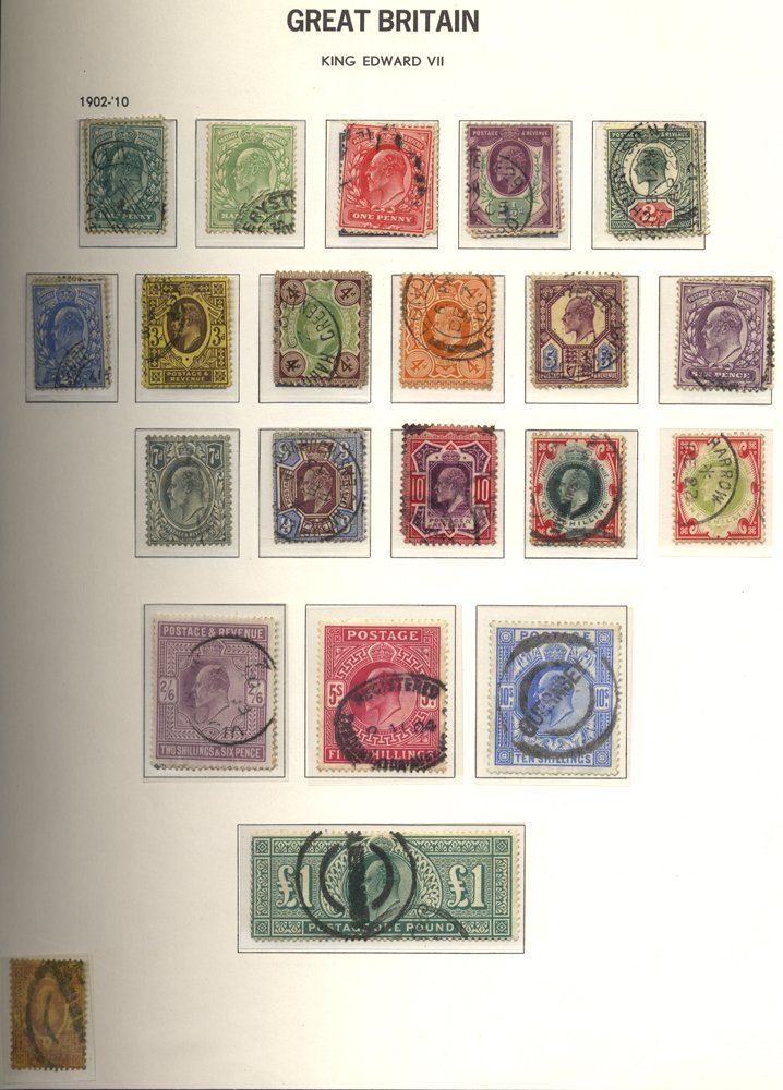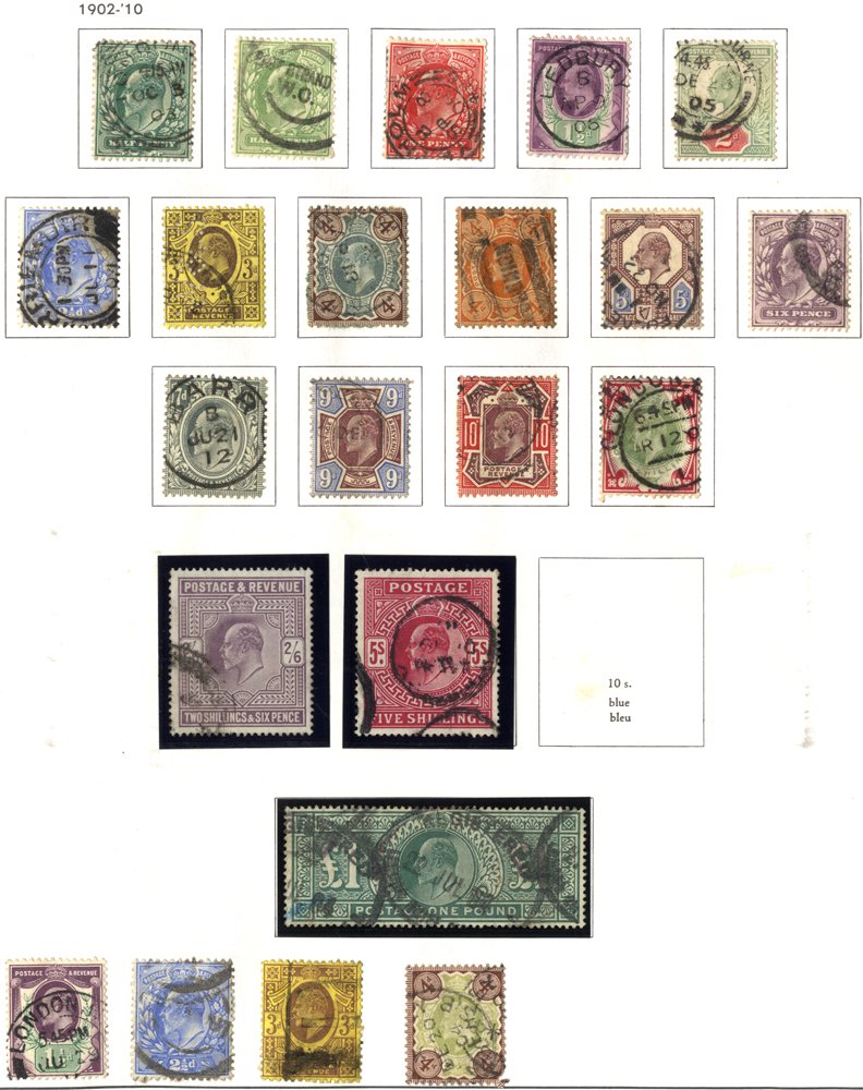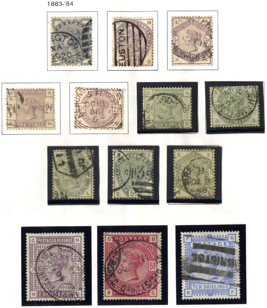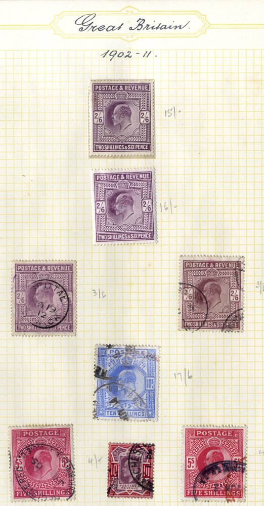COLLECTION of good to FU in a Windsor album incl. 1840 1d (2) both four margins, range of 1d red Plate numbers from 71 to 222, 2d Plates (6), ½d Plates (11), 1½d (2), a few Surface Printed incl. 1883 10s VFU. KEVII 2/6d, 5s, range of 1912 Royal Cypher to 1s, Seahorses incl. 1913 Waterlow 10s FU, odd perf fault, 1934 Re-engraved set U etc.
