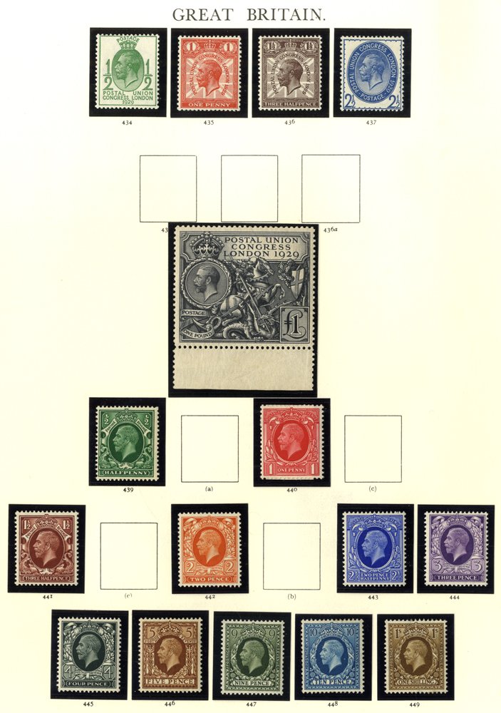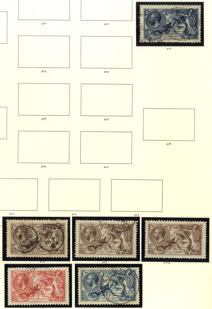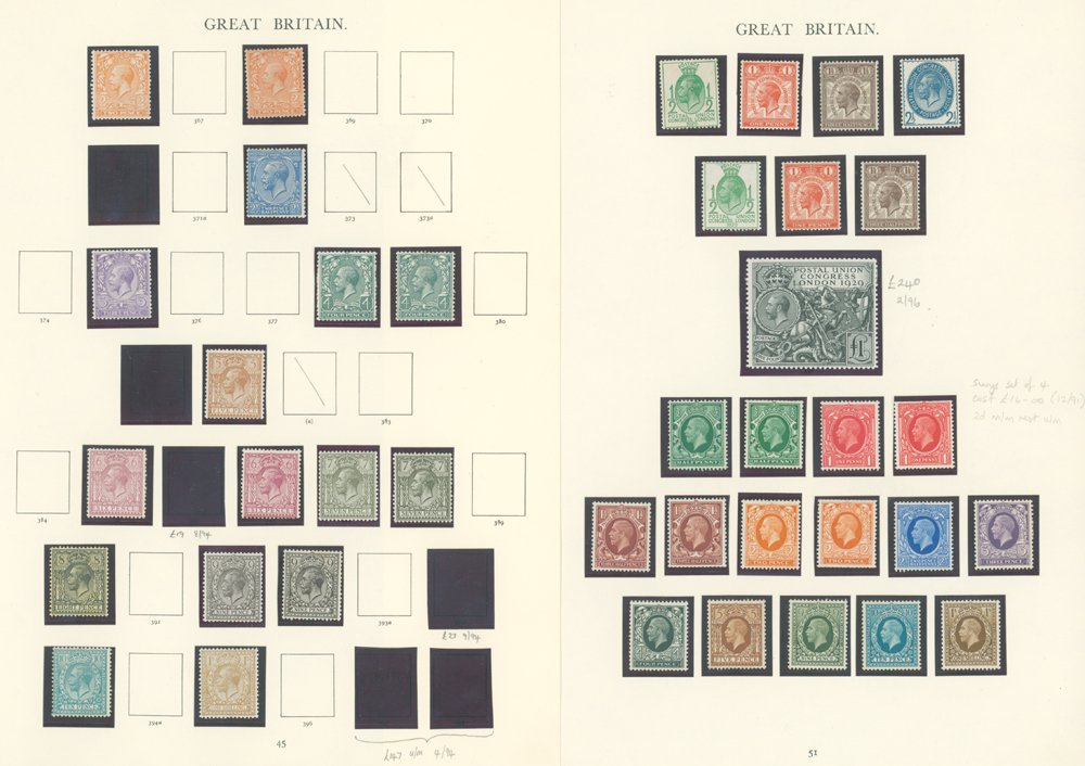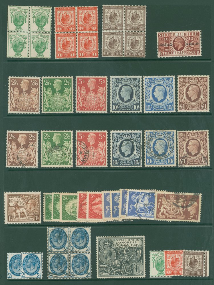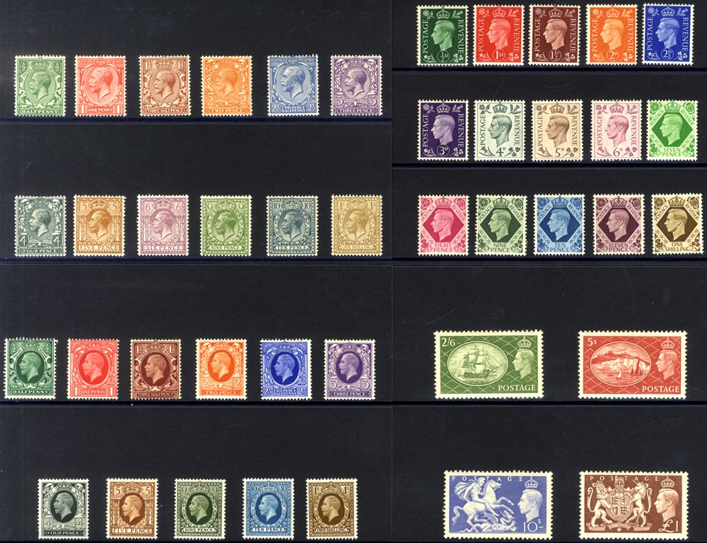 1902-70 M COLLECTION in a Windsor album, from KEVII 2/6d & 5s, 1912 Royal Cypher set, 1924/5 Wembley's UM, 1929 PUC £1 (thinned), wmk sideways, 1934 Photogravure, 1934 Re-engraved 2/6d & 5s, 1937 set + sideways, 1939 high values UM (some toning), 1948 Wedding UM, 1952 Tudor UM, 1955 Waterlow & 1958 1st DLR set M, later Wildings, commems incl. phosphors, later to 1970 then Postage Dues incl. 1914 set M, 1924 set M, 1936 set M, 1937 set M, 1954 set UM, 1955 set UM, 1959 set M, then a range of Officials incl. useful Govt parcels & Admiralty ½d to 3d set (unchecked), finally Channel Islands Occupation issues.