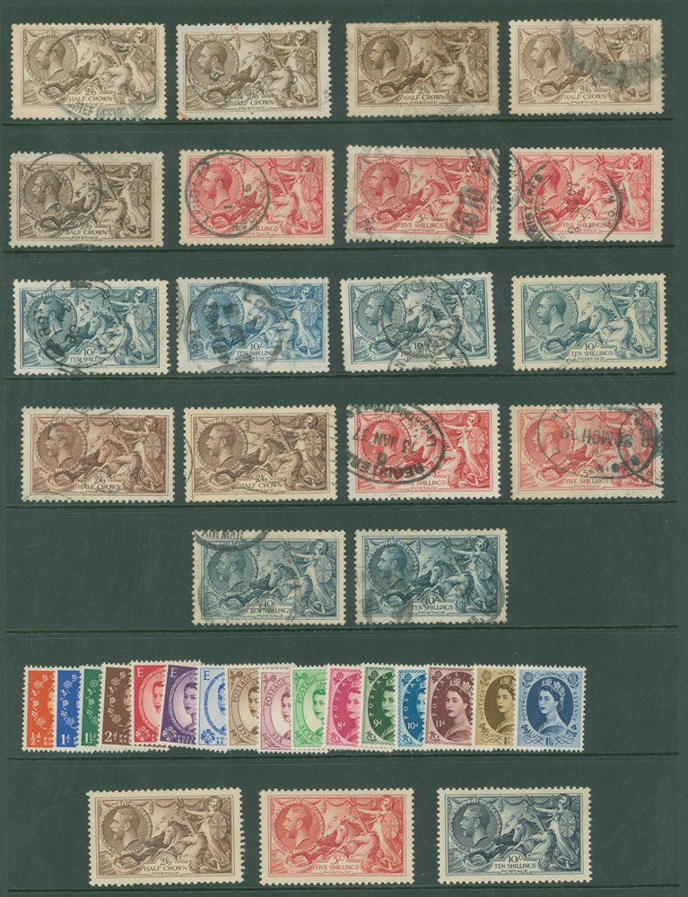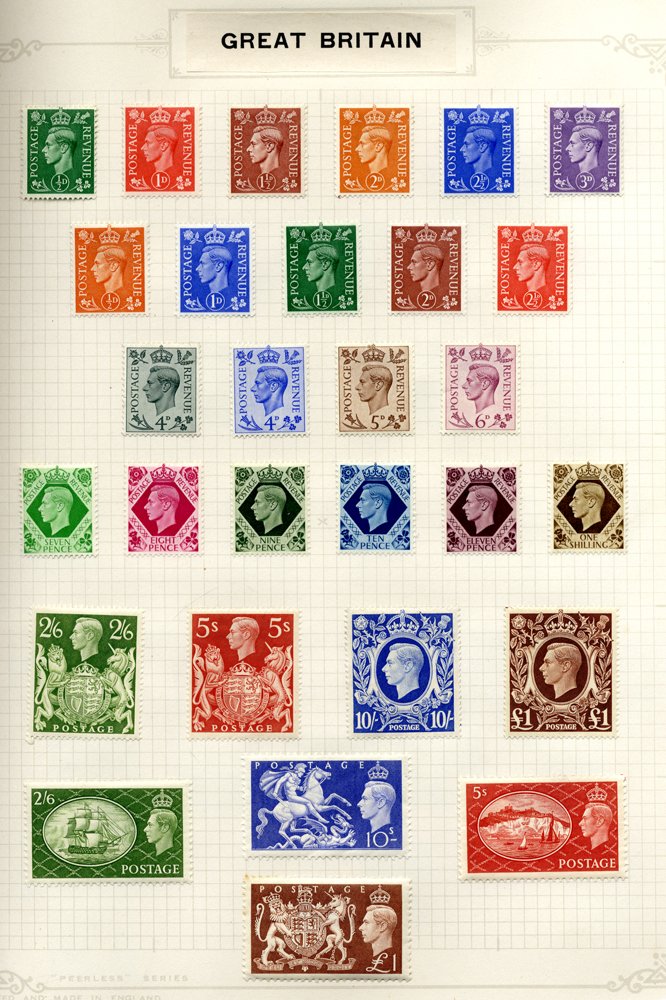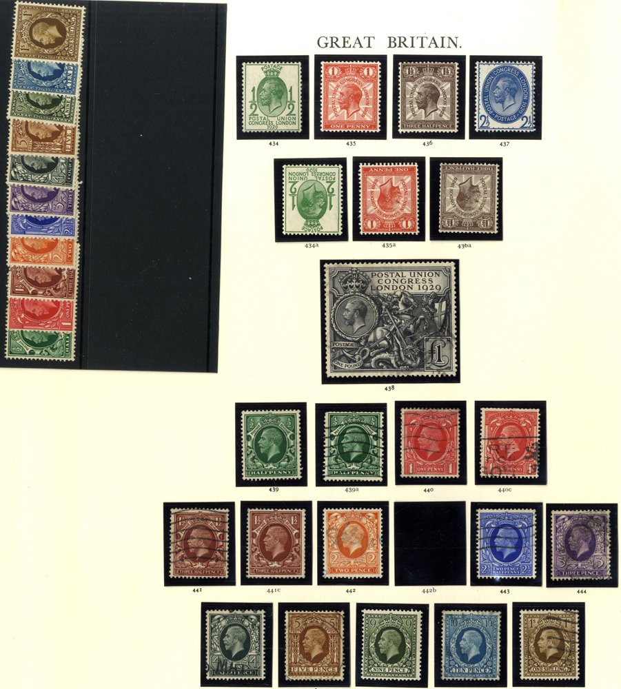 COLLECTION 1911-70's M & U housed in a Simplex album incl. 1911-12 Downey Heads - FU range incl. No Cross on Crown ½d & 1d, 1912 Royal Cypher VFU range of shades, 1918 Bradbury Seahorses good to FU, 2/6d (3), 5s (2), 10s (2), 1924 Block Cypher VFU, 1934 Re-engraved set U, 5s UM, 1937 Defin set UM, 1939 High Vals U, 1948 Wedding UM, 1951 Festival set UM, 1952 Tudor set UM, 1959 Phos Graphite set UM & VFU, later Wildings, Machins etc.