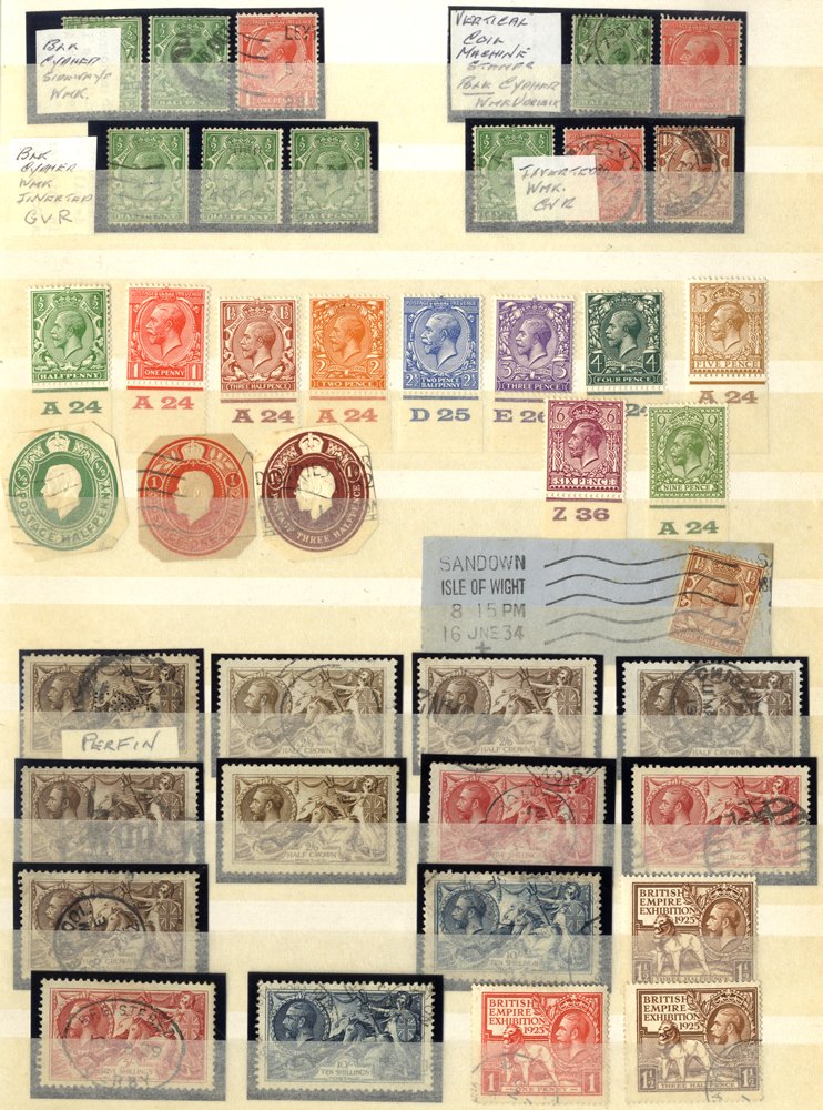 COLLECTION 1840-1960's within a stock book, from 1840 1d, clear to good margins black MC, another example appears unused - damaged lower right corner, 1841 1d (36) mixed condition, 1841 2d, duplicated Perf 1d reds, ½d Bantams U on piece, Surface Printed incl. duplicated 1d lilacs, KEVII to 5s U, 2/6d Perfin, KGV incl. booklet panes (3) with London Chief Office cancels, 1924 Block Cypher set M, odd Control single, Seahorses - various incl. DLR 2/6d M, 10s U (2), 1934 Photogravure set M, Sideways set M, KGVI incl. 1939 High Vals M & U sets, 1951 Festival set UM, 1948 Wedding UM & FU, QEII Wildings - duplicated etc. Viewing recommended.