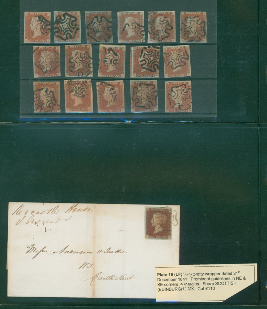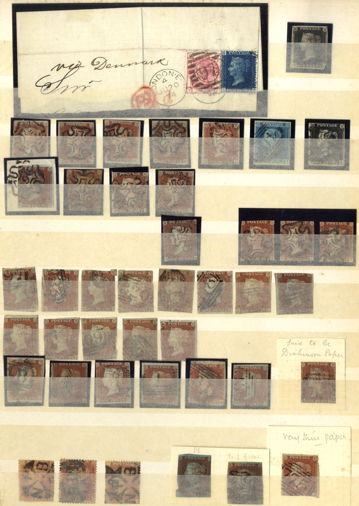 MISCELLANEOUS range on stock leaves mainly 1841 1d incl. Plates 12 to 17, 19 & 30 (3) each on cover mostly with four margins and several off cover (18 with MC, 15 with numeral cancels) also 1840 1d four margins, 1841 2d (2) both four margins, 1884-6 Hoster cancels on covers (5), also three covers bearing postal fiscal frankings, perf line engraved 1d values each used on a piece (16) etc.