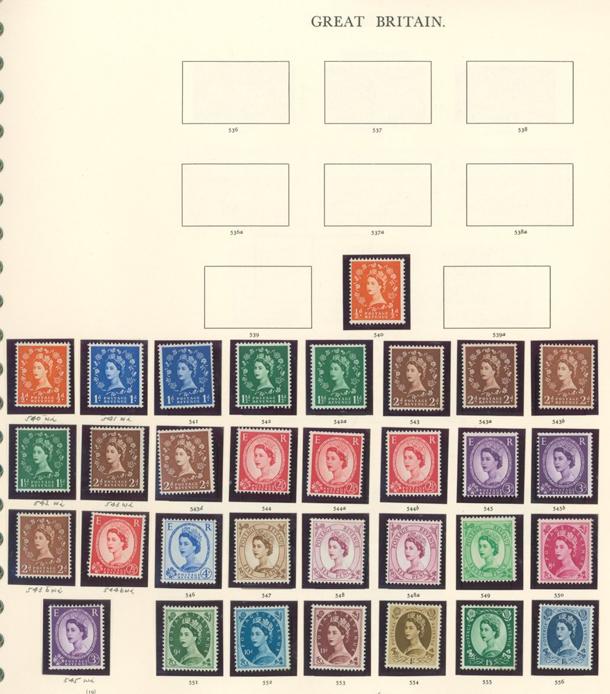 COLLECTION 1840-1970 M & U housed in a Windsor album incl. 1840 1d & 2d (both four margined), range of Perf Line Engraved incl. 1d red Plates up to Pl.224, 2d Plates (7), 1½d (2), Surface Printed good general range incl. several VFU (c.d.s), 1887 onwards mainly M or UM incl. 1887 Jubilee set M, KEVII DLR vals to 6d M (with shades), 2/6d (3), 5s (2) VFU, Somerset House 2/6d (3), 5s, 10s & £1 VFU, KGV Bradbury Seahorses 2/6d (2), 10s FU, 1929 £1 PUC marginal M (gum toned), 1934 Photogravure set UM, 1934 Re-engraved set U, KGVI incl. 1937 Defin set UM, 1939 High Value set UM, 1948 Wedding UM, 1951 Festival UM, 1952 Tudor UM, 1955 Waterlow Castles UM, 1955 Edward Crown UM, three Graphite sets UM, 2nd DLR Castle set M, later Wilding sets, commems incl. phosphors UM, a few Officials M or UM, regionals etc.