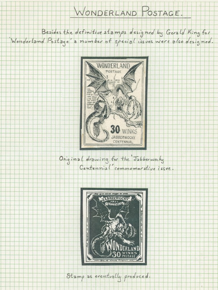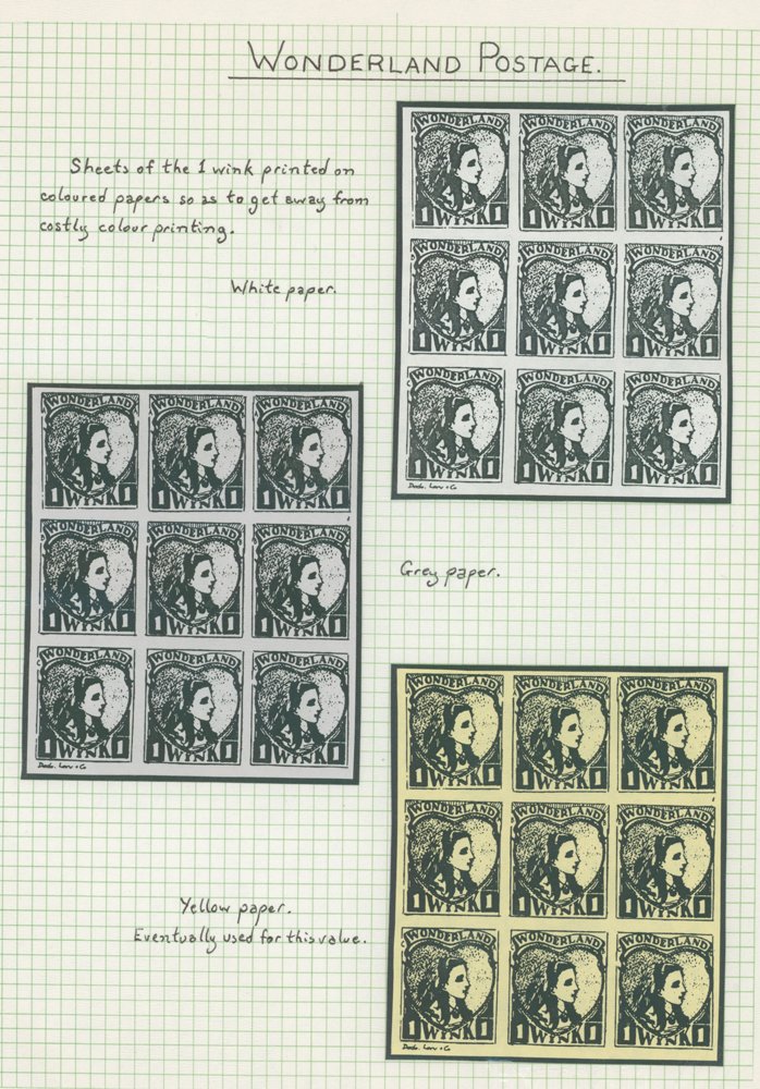 1890 WONDERLAND POSTAGE STAMP CASE complete with outer envelope, slip in case, folded card & booklet, also a small collection of 1960's Wonderland Cinderella labels singles & blocks, together in a display album.