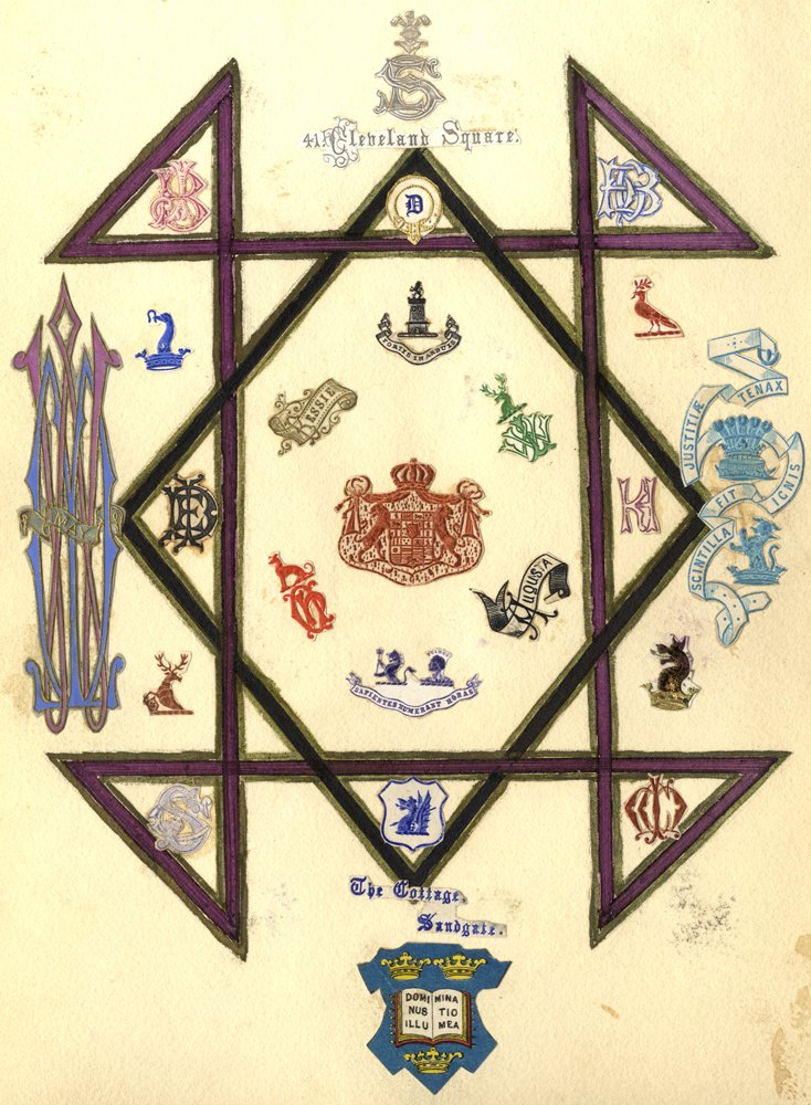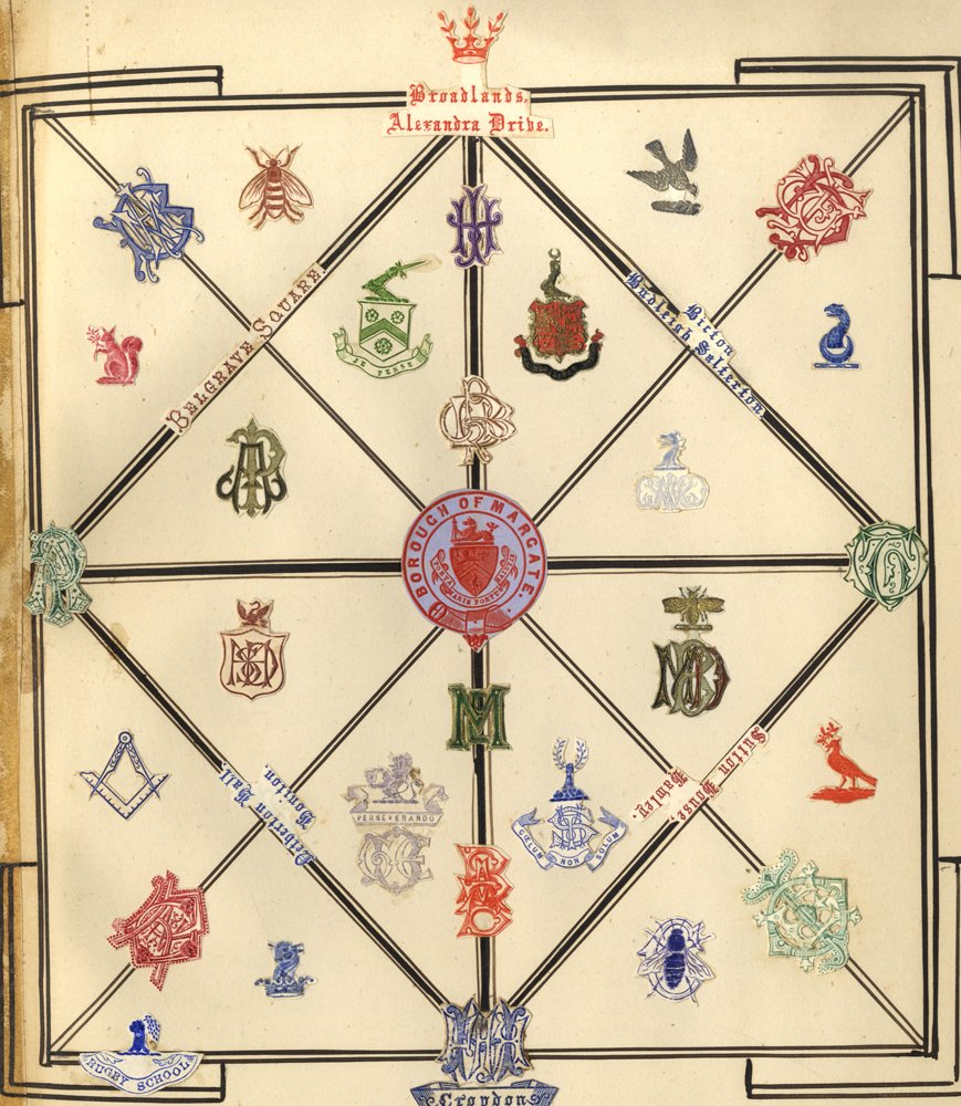 ARMS, CRESTS & MONOGRAMS collection within a home made booklet, a further range of loose housed in a packet for research.