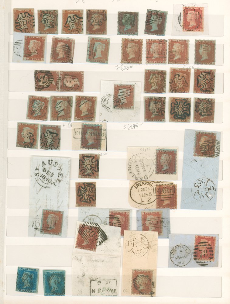 1840 to mostly 1850's line engraved selection incl. 1840 1d black (poor) 1841 1d red range (87) incl. some very fine with four margins & several with MC cancellations, perf 1d reds on blued paper range (c90+ many fine) plus a scattering of other issues to view. (400+) £300 to 350 £500.00