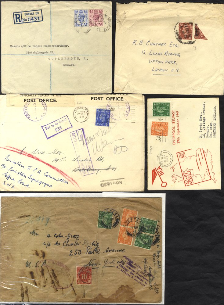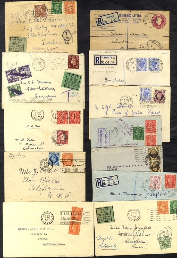 KGVI large bundle of covers & cards with bisect item noted, much cancellation interest, postage due, registered, stationery, few loose stamps etc. (102 covers & qty stamps)