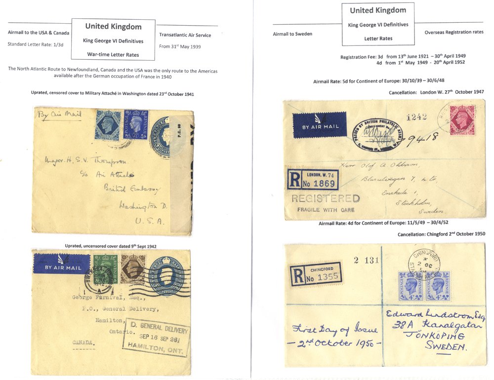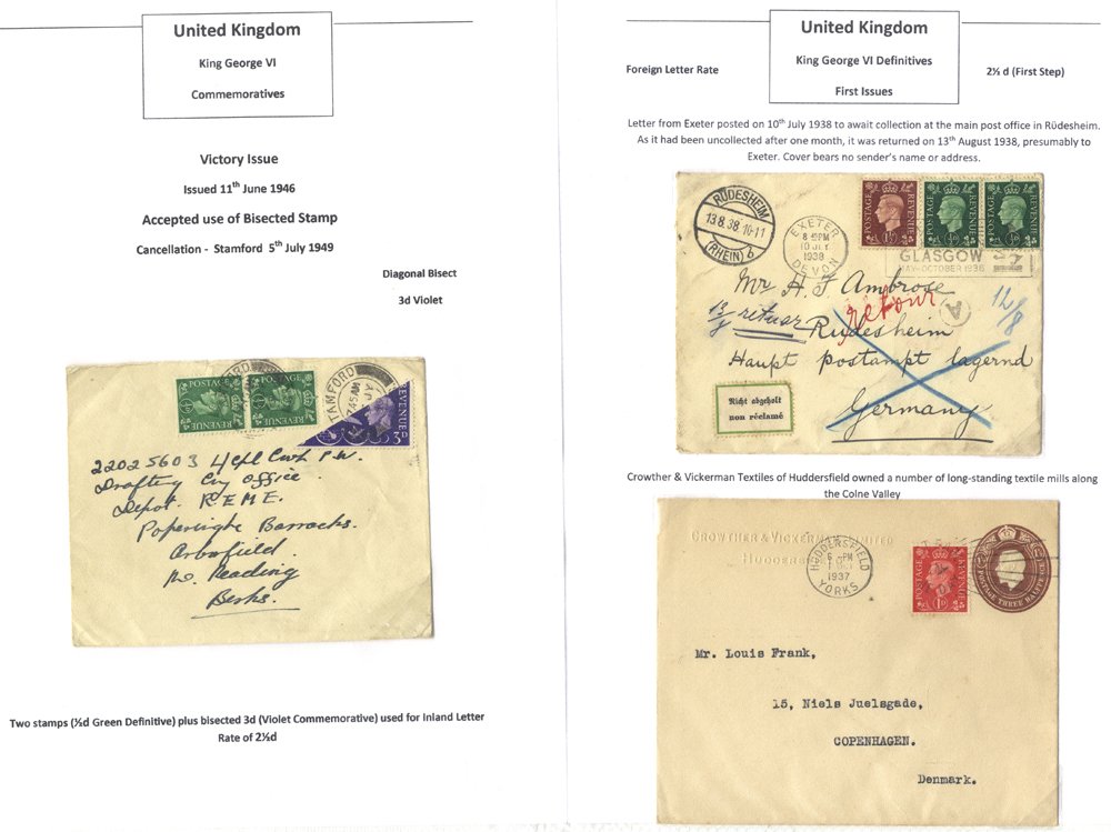 KGVI study in binder inc 1937 values to 1/-, later issues plus wmk varieties; FDCs, bisects on cover (2), variety of usages inc airmail, express, reg’d, censored etc. (50 covers & qty stamps)