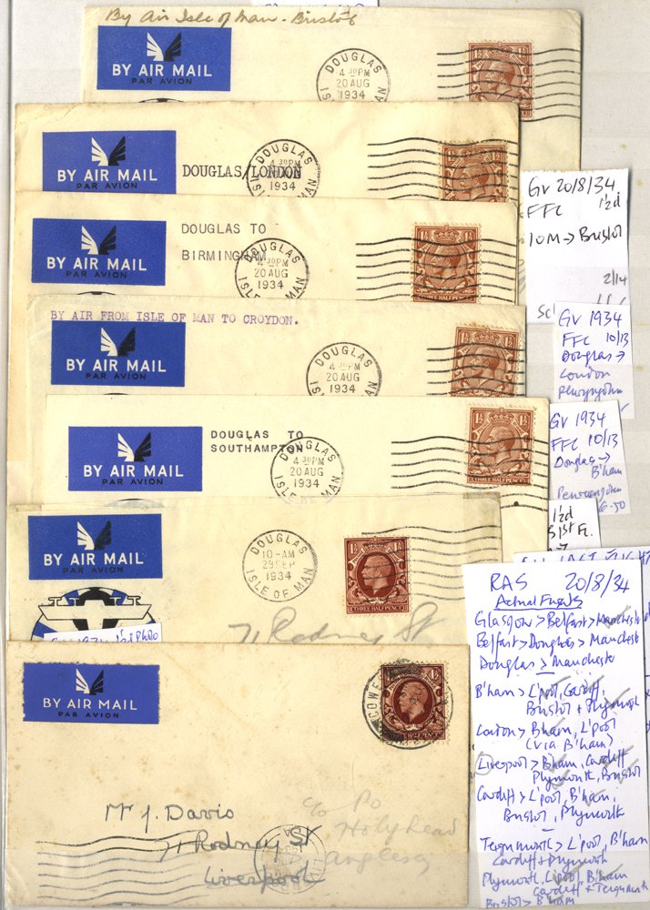Inland Services - Range of covers in a binder c1928-37 inc special Liverpool flying boat item, Galway-Croydon 1929 flight, Provincial Airways (2), RAS (24), Hillman (3 inc pilot-signed item), Orkney flights, NEA trio etc. (51)