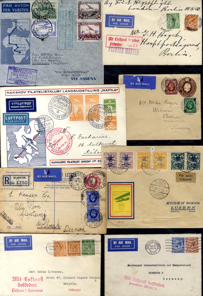 Europe - KGV covers flown to a variety of European destinations 1928-36 inc Scandinavia, Germany, Belgium, Hungary plus a few incoming items inc a study of rates on leaves. (47)